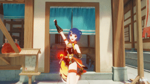 元素爆発「旋火輪」で長時間炎元素を付与できるため、行秋と組ませた蒸発コンボが強力。