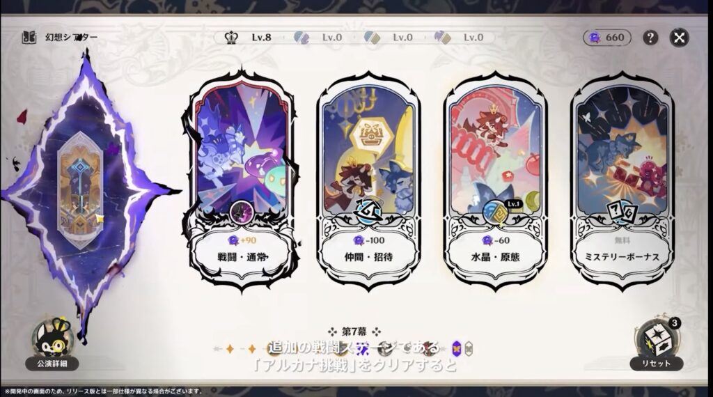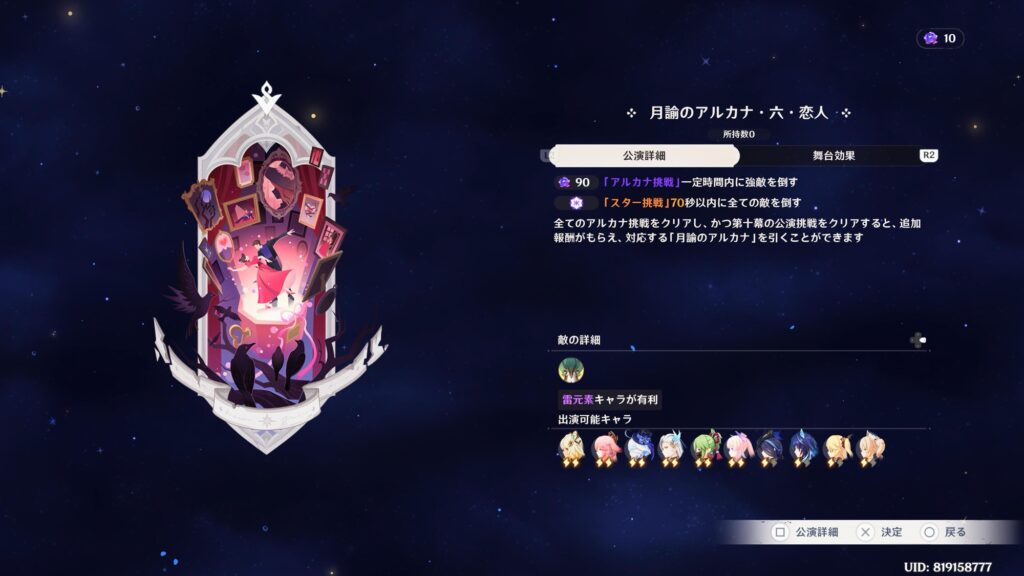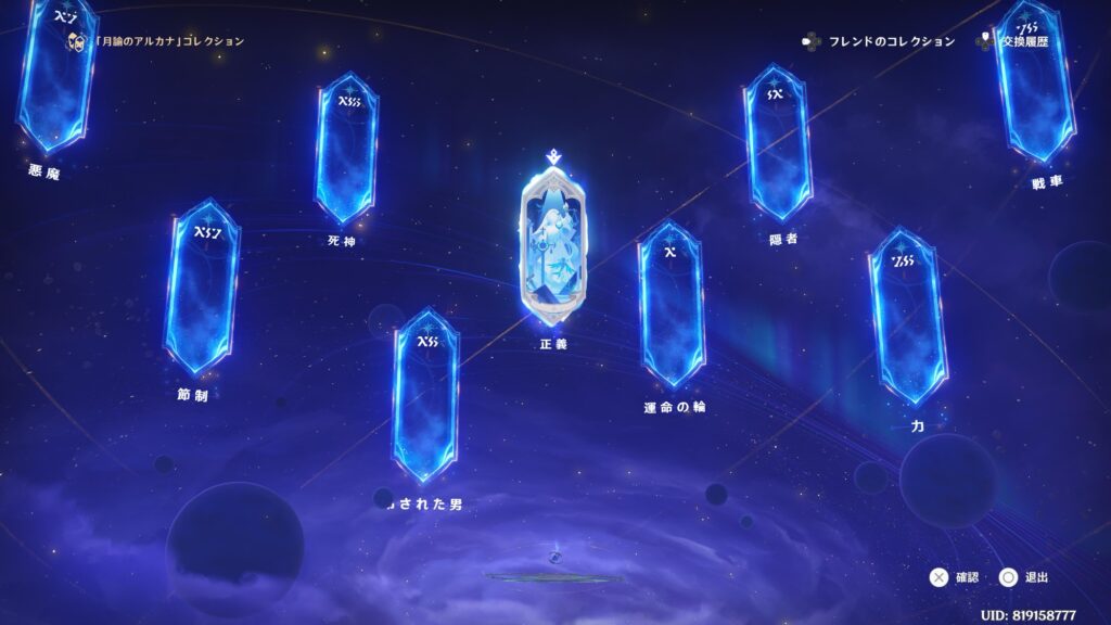 追加ステージの「アルカナ挑戦」をクリアすると月論のアルカナを入手できます。月論のアルカナはコレクション要素がありフレンド同士での交換も可能です。