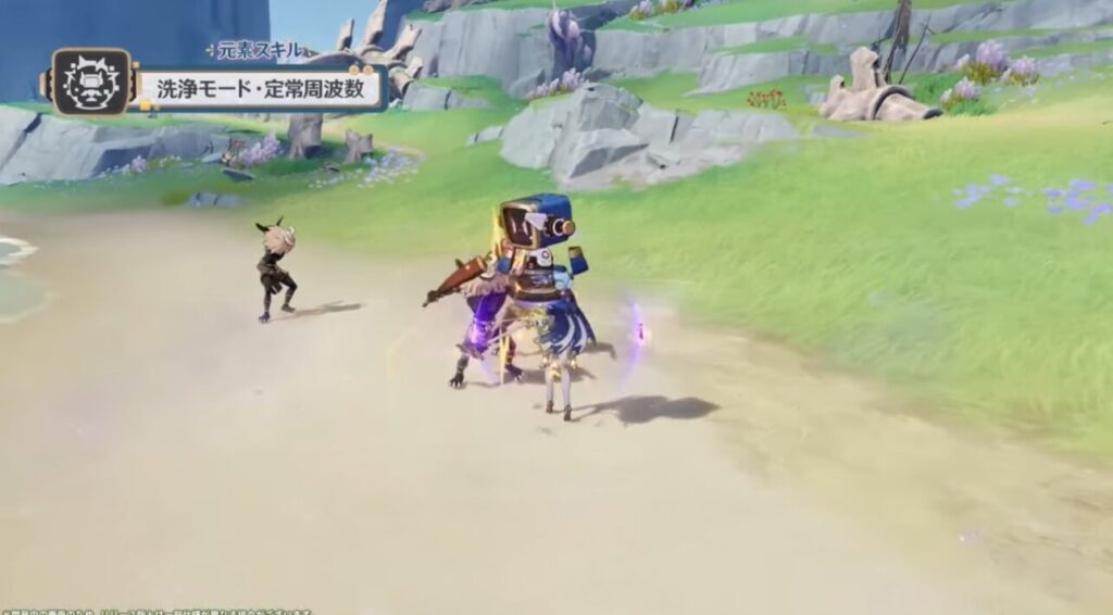 オプティカルフローシールドを展開し、さらに「ビルギッタ」を召喚して放電攻撃で継続的に雷元素ダメージを与えるスキルです。