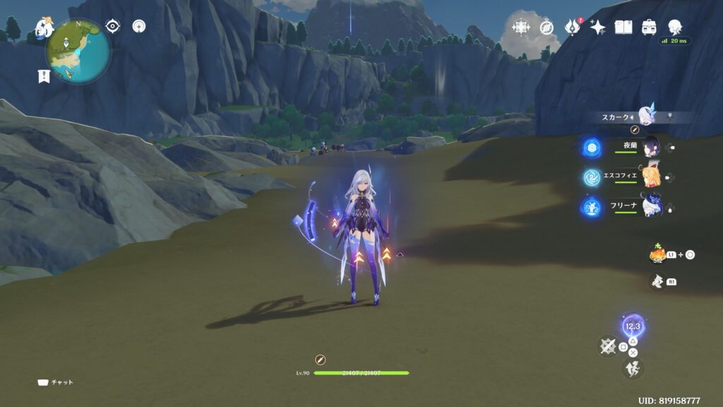 - 再度スキル入力で高速移動を解除し、虚境の裂け目を吸収して元素爆発用のバフを獲得
