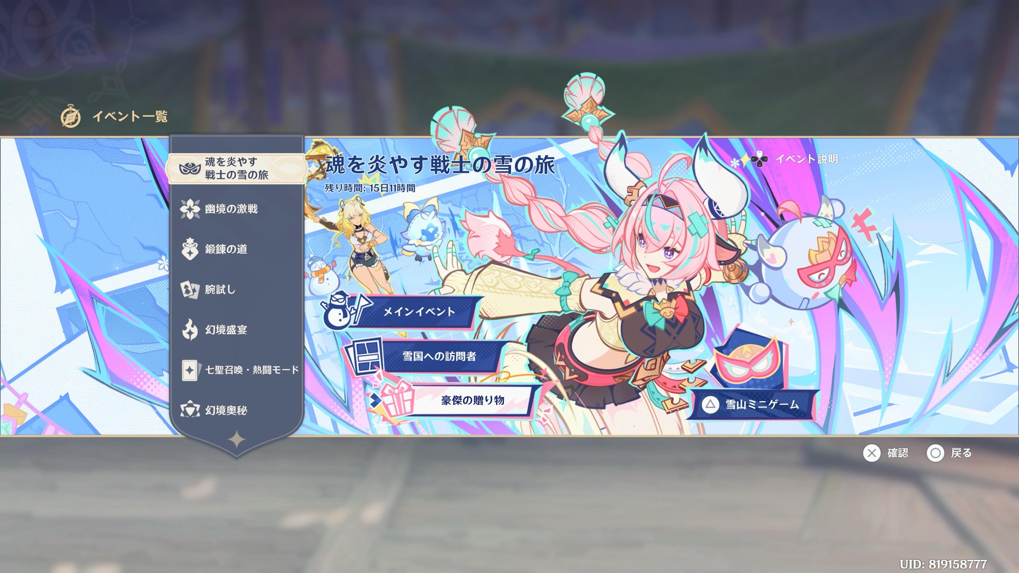 期間限定テーマイベント「魂を燃やす戦士の雪の旅」では、4つの挑戦コンテンツを進めて「炎魂値」を集め、交換所で報酬を受け取る形式のイベントです。