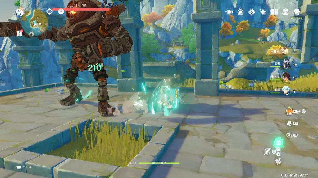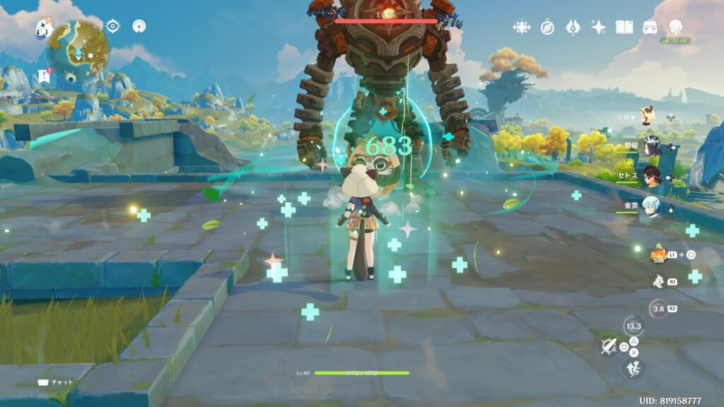 元素爆発は必要エネルギーが80とやや重いですが、元素チャージ効率200〜250%を確保すると安定して回せます。爆発が途切れなく維持できるようになると、回復とデバフ支援が常に機能し、編成全体の生存力と火力が大きく向上します。