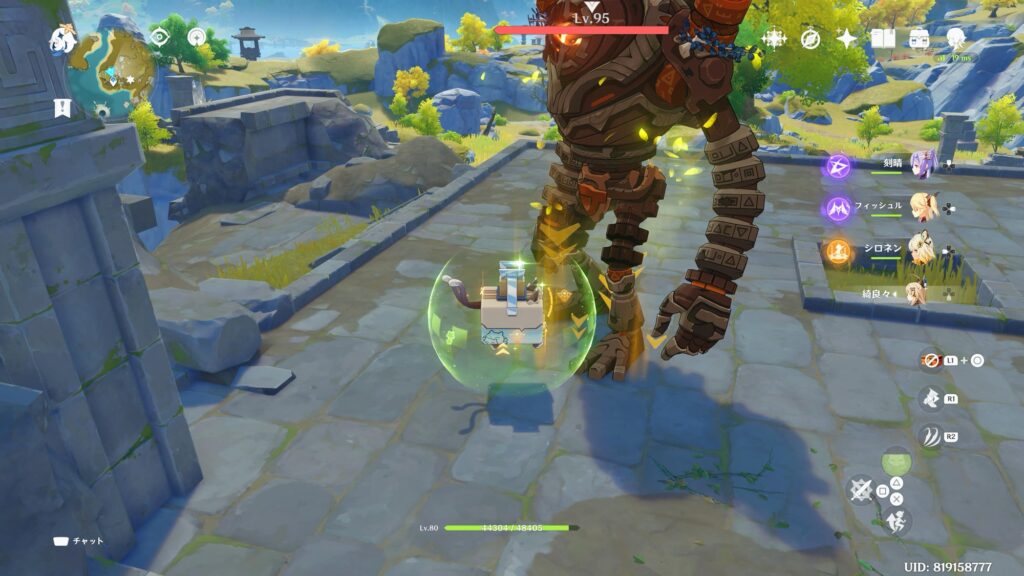 HP上限を伸ばすほどシールドとダメージが強くなるため、基本はHP特化ビルドで味方を守りつつ、開花・激化などの草元素パーティを支える役割になります。