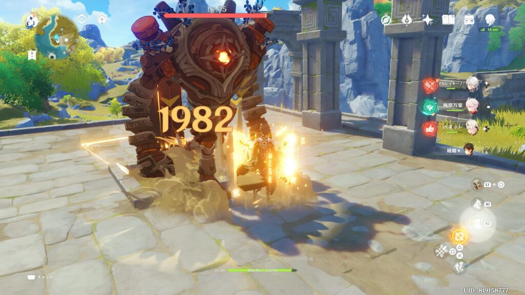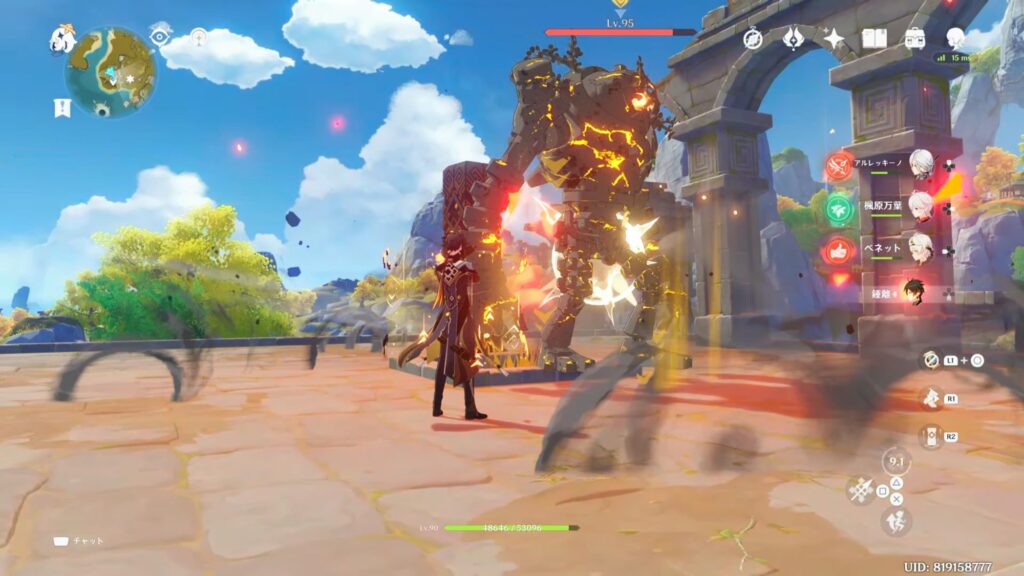 短押しで「岩柱」を生成し、長押しで周囲の岩元素を共鳴させながら玉璋シールドを展開します。