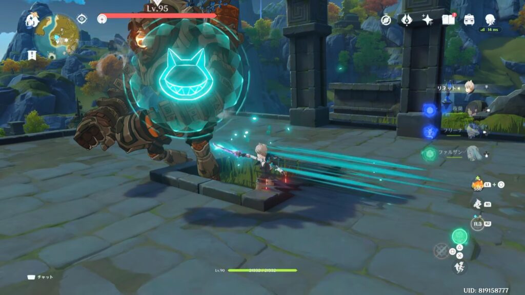 - 集敵性能:元素爆発で敵を引き寄せるデコイを設置し、範囲攻撃を継続的に与える。